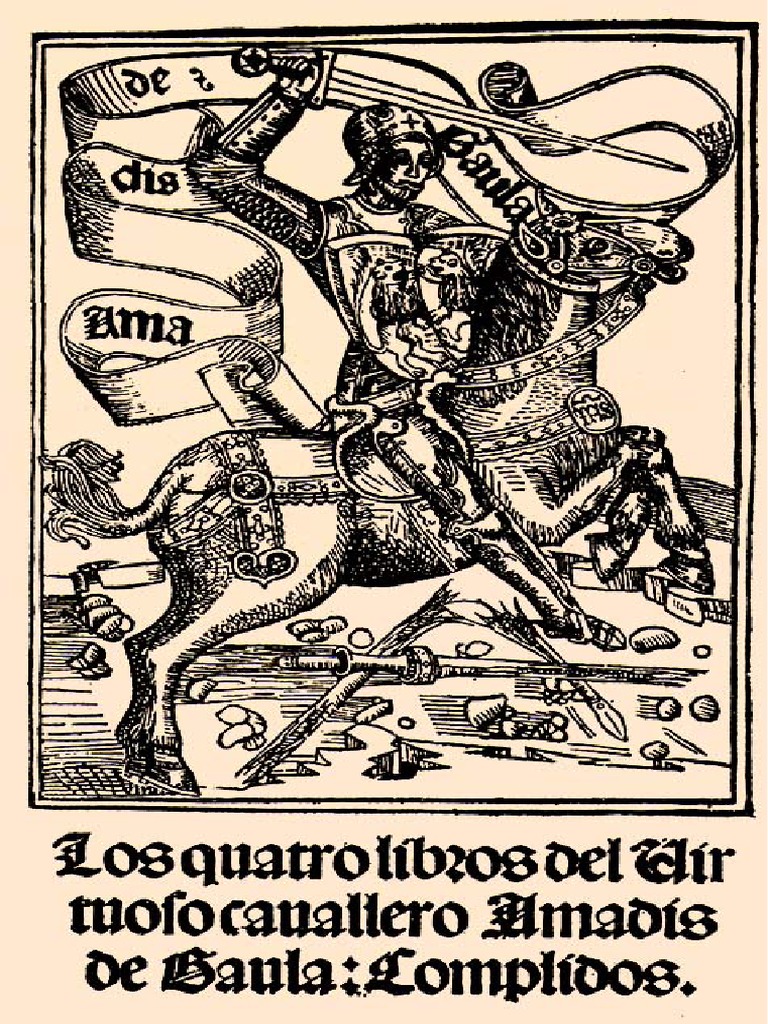 Xilografía de la primera edición conocida del Amadís de Gaula de Garci Rodríguez de Montalvo, impresa en Zaragoza por Jorge Coci en 1508. Amadís de Gaula es una obra de la literatura medieval en idioma español y uno de los más famosos de los llamados libros de caballerías, que tuvieron una enorme aceptación durante el siglo XVI en la.
