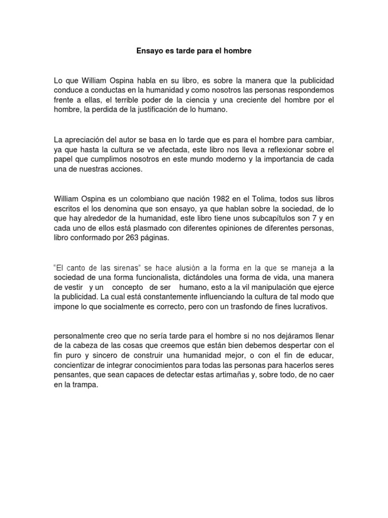 Ensayo Es Tarde para El Hombre PDF Homo Sapiens Ensayos