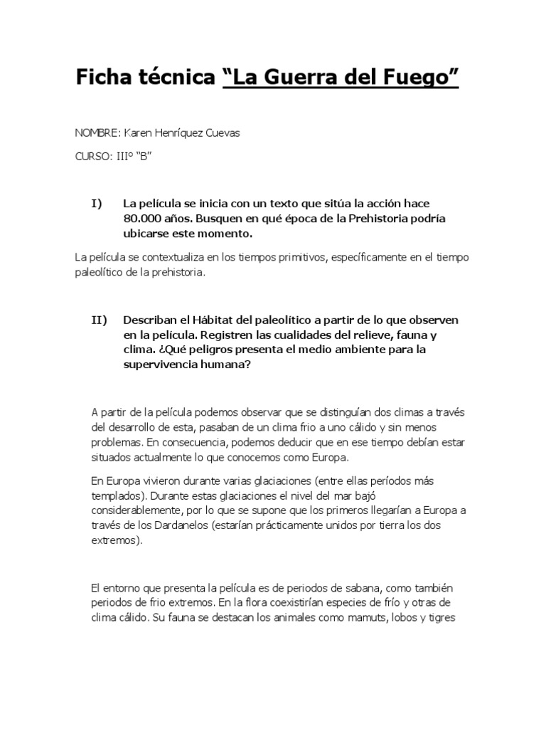 Ficha Técnica de Película Guerra Del Fuego Evolución Science