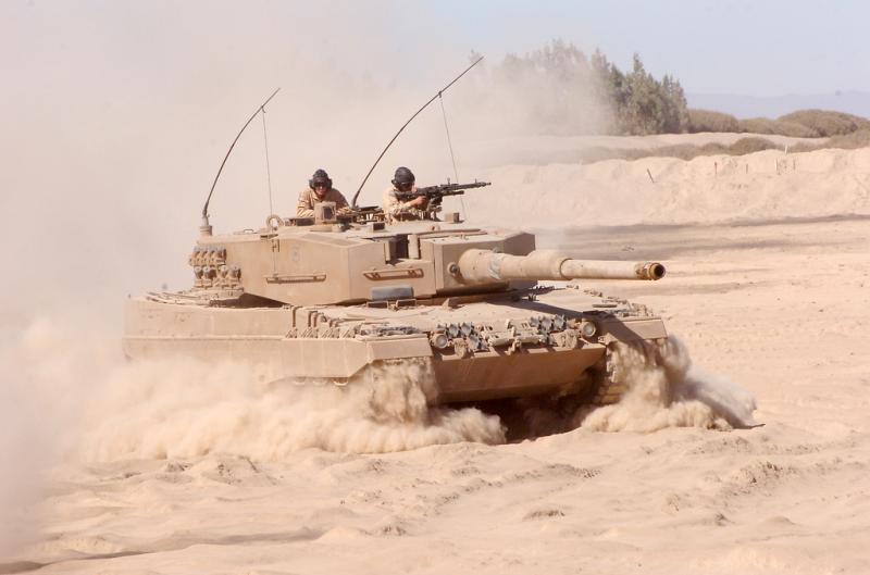 El tanque blindado cruza un campo minado durante la escena épica de invasión de guerra de fuego