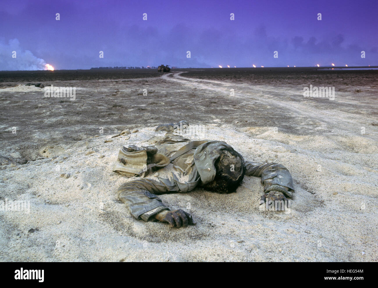 Soldados iraquíes muertos al final de la guerra del Golfo, Kuwait desierto. Kuwait Fotografía de
