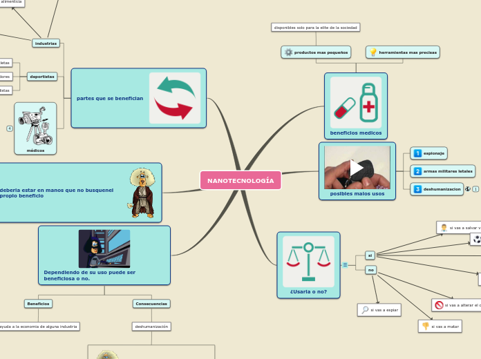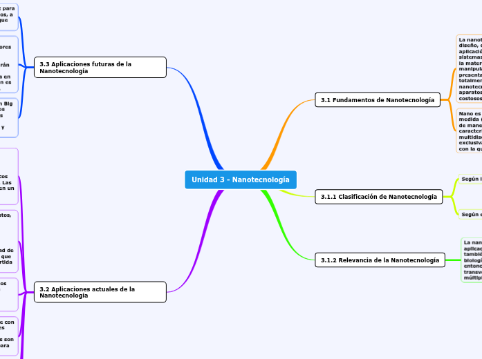 Mapa Mental de la Nanotecnología. En el centro del mapa mental colocamos el término nanotecnología y a su alrededor vamos agregando diferentes conceptos relacionados. En primer lugar, podemos añadir el concepto de escala para recordar que la nanotecnología se enfoca en materiales y estructuras a nivel nanométrico, es decir, a escala de átomos y moléculas.