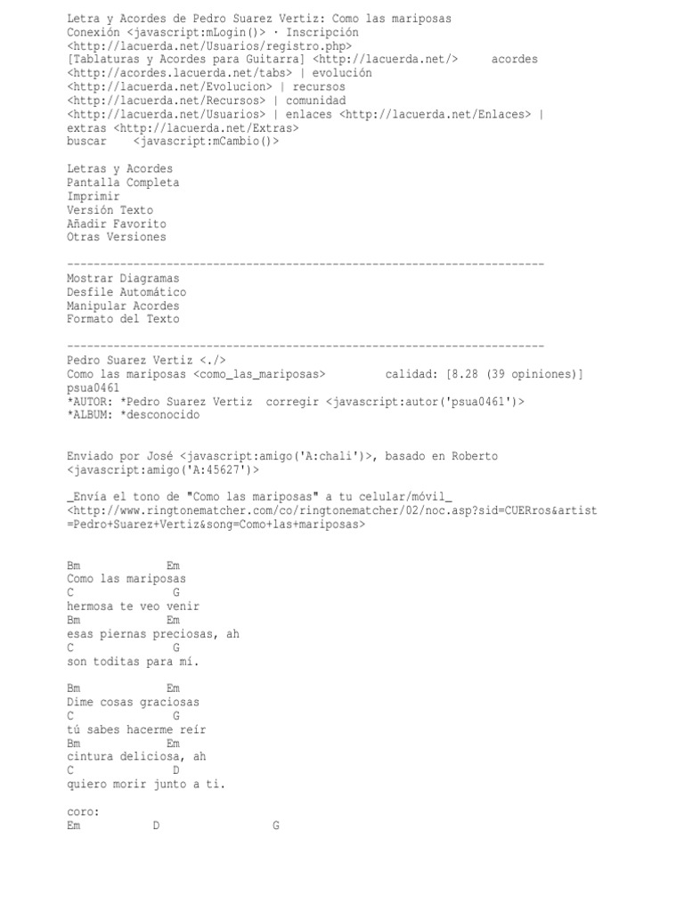 Pedro Suarez Vertiz, Como Las Mariposas Letra y Acordes PDF Ocio Entretenimiento (general)