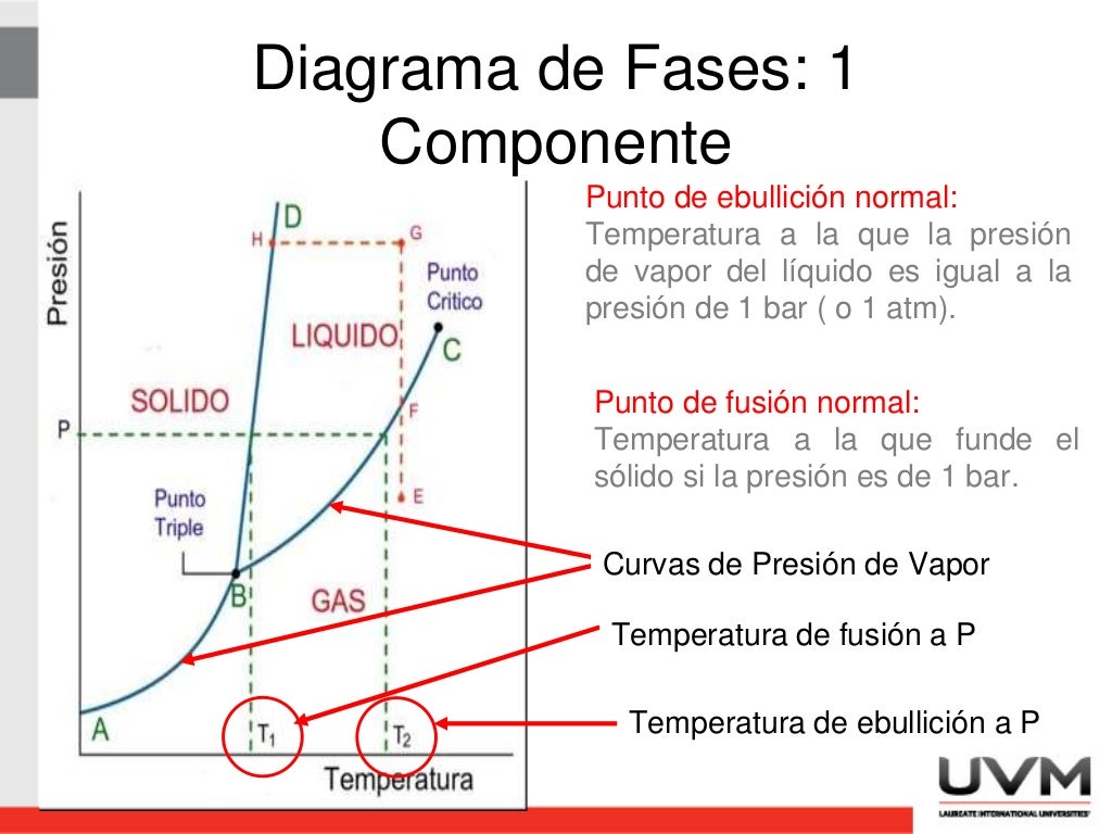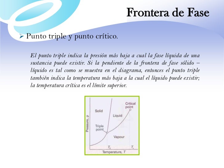 El punto de intersección de las tres curvas representa el punto triple de la sustancia: la temperatura y la presión en las que las tres fases están en equilibrio. A presiones por debajo del punto triple, una sustancia no puede existir en estado líquido, independientemente de su temperatura. El término de la curva líquido-gas representa el.