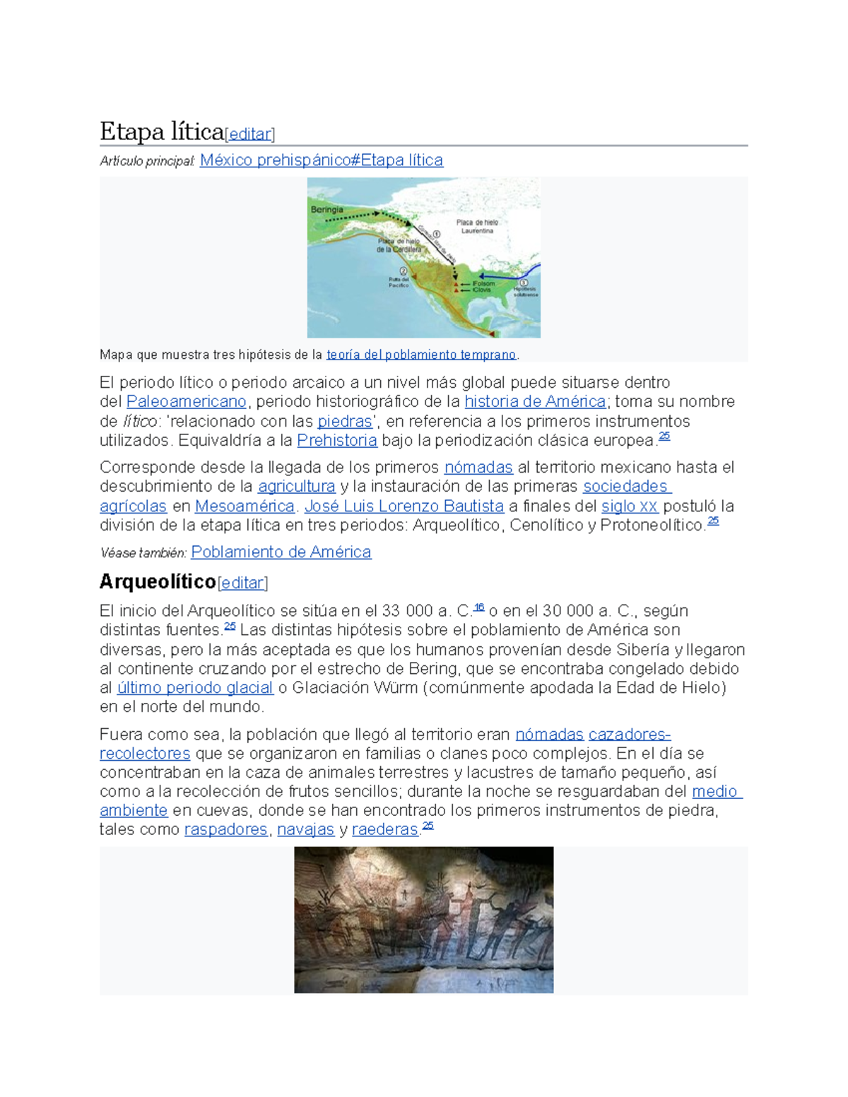 Etapa lítica HISTORIAS Etapa lítica[editar] Artículo principal México prehispánicoEtapa