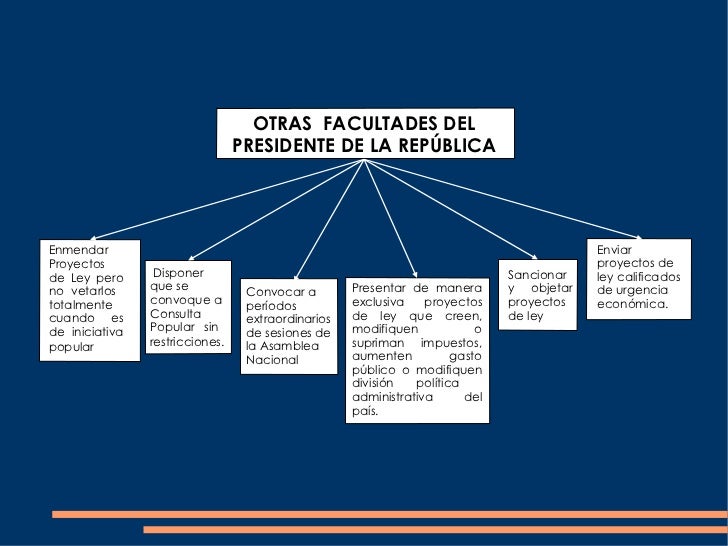 El presidente de la República es el hombre que tiene el destino del país en sus manos. Sus funciones las cumple desde Palacio de Gobierno. Las funciones. El cargo es ejercido por un periodo de 5.