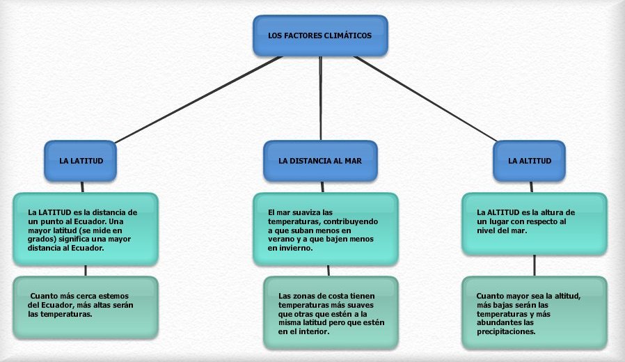 A continuación te explicamos cuáles son los elementos y factores del Clima. También te puede interesar: Tipos de Clima. Índice. Diferencia entre Tiempo y Clima; Estos son los elementos del clima. (topografía) y precipitaciones, son parte de los factores que influyen en la temperatura de una región. Precipitación Es una de las etapas.