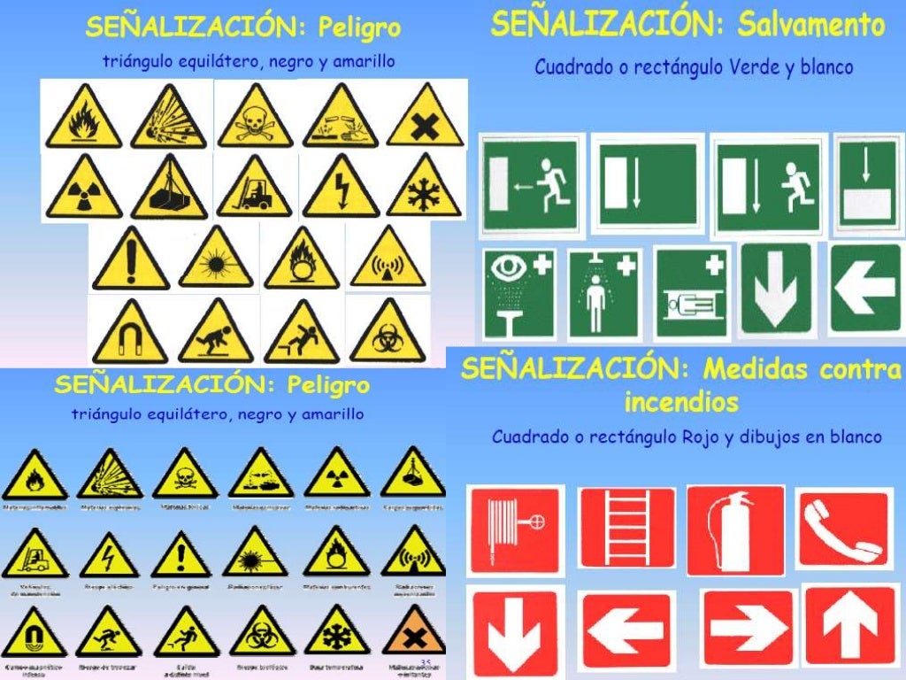 Tipos de señales de seguridad (con ejemplos) Las señales y signos de seguridad normalizados se caracterizan por ser imágenes, pictogramas, formas, palabras, frases, oraciones o afirmaciones. Cada forma transmite un significado diferente, y cada color representa el tipo de precaución en el que se clasifica.