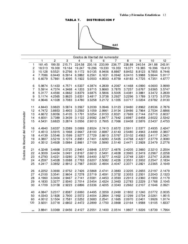 La distribución F o distribución de Fisher-Snedecor es la que se usa para comparar las varianzas de dos poblaciones diferentes o independientes, cada una de las cuales sigue una distribución normal.. Tablas de la distribución F. Como el nivel de rechazo se ha tomado como α= 0,05, entonces α/2= 0,025. La distribución F(0.025; 20,20.